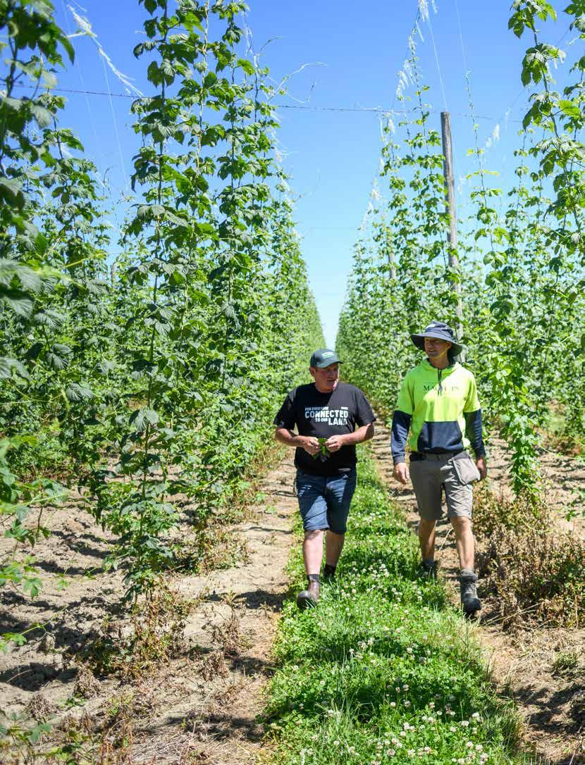 Brent McGlashen inspects his hops crop near Motueka. Photograph by Oliver Weber.