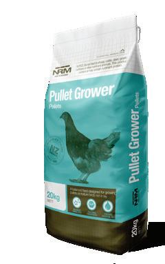 Pullet Grower Pellets (see pages 29 and 30) at 6 to 8 weeks of age. Birds which are underweight can be kept on NRM Chick Starter Crumble for a few more weeks if required. The nutrient profile of NRM Pullet Grower ensures that pullets grow efficiently without becoming over fat. The benefit of the NRM Pullet grower, is that it also does not contain a coccidiostat. If pullets start laying eggs a little earlier than anticipated, as long as they have been on NRM Pullet Grower for a minimum of 10 days, their eggs are safe for human consumption.