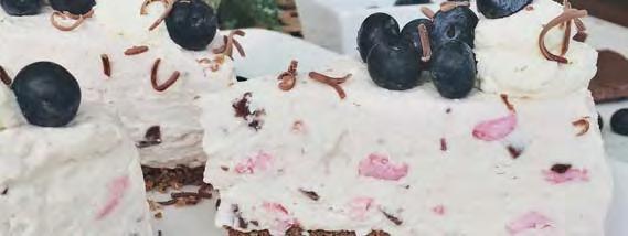 6. Beat the gelatine into the cream cheese mix until well combined. Add the yoghurt and mix thoroughly. Gently fold in the whipped cream, marshmallows and chocolate.