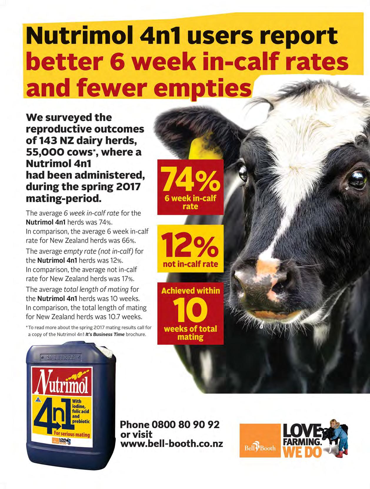 milk production, weight gain and/or reproduction. Stock are generally more susceptible to the adverse effects of parasites around calving and early lactation. Treatment of cows at this time, particularly those in less than ideal body condition or which may be under stress from disease, lameness or high parasite burden, can be very beneficial. Cydectin Pour-On provides some of the best parasite control available against key productionlimiting parasites of adult cattle, with 35 days control of Ostertagia ostertagi and 28 days control of Trichostrongylus axei and with its zero withholding periods for milk, meat and bobby calves, you can rely on Cydectin Pour-On at any time for those cows that need it. For further information, contact your Farmlands Technical Field Officer or the friendly team at your local Farmlands store.