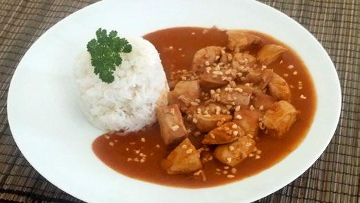 6. Add the chicken back to the pan along with the soy sauce and coconut cream and bring to the boil.