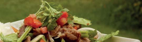 Serve on a bed of rocket, whole green beans, baby spinach, sun-dried tomatoes, feta, sautéed red onion and small tomatoes. Don't forget the fine wine!