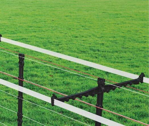 Can be used with electric fence systems and provides for easy installation of hot wires and tape.