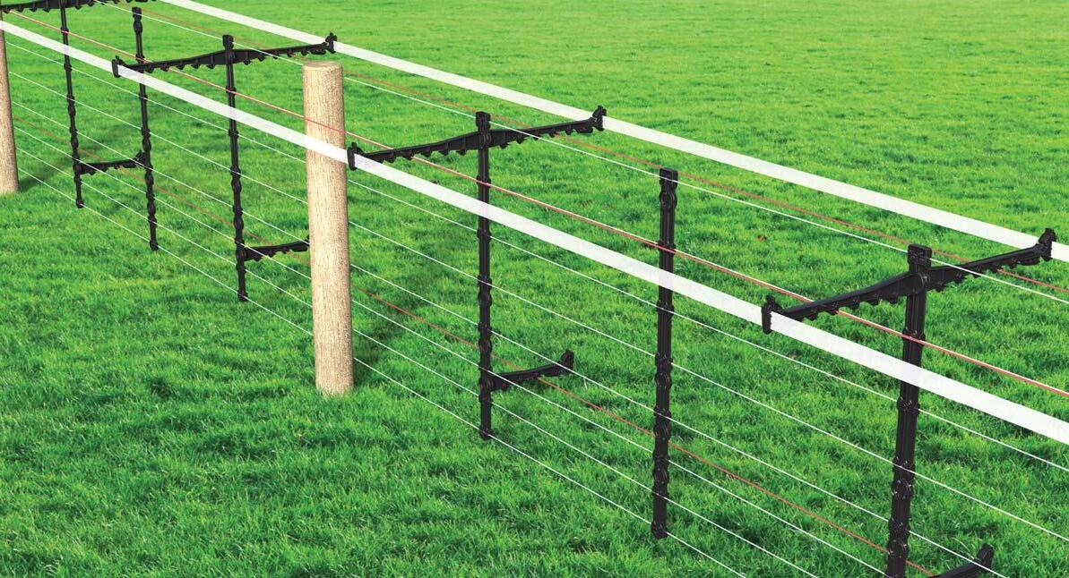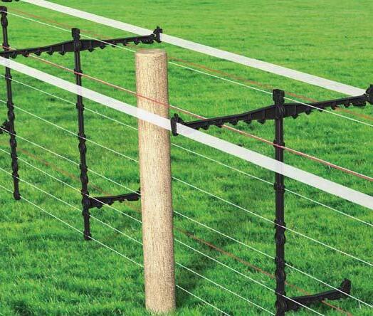 Can be used with electric fence systems and provides for easy installation of hot wires and tape.