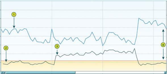 Consistency graph, which gives the farmer an easy way to monitor feed consistency and identify factors that may be affecting the herds’ rumination. Using SCR’s system, farmers can monitor not only milking cows but also dry cows and replacement heifers, which can be especially useful during transitions such as going onto crop or calving. In addition to monitoring rumination trends in both the short and long-term through the graph, the calculated Last Week Group standard deviation is a useful performance indicator for optimising feed efficiency. Lower variability values reflect more stable rumen flora, which is essential for optimal nutrient digestibility. In the following graph, the group rumination standard deviation (the lower line) reflects how variable the cows are in their daily rumination. Biological rumination standard deviation is typically between 50-80 minutes/day. When issues affect a proportion of the herd we see the variability increase greatly, as seen in this example when there was a herd level issue of acidosis when transition feeding on a New Zealand dairy farm. Accurately recording rumination in real time gives farmers the opportunity to respond quickly and change management or diets to the benefit of the herd.