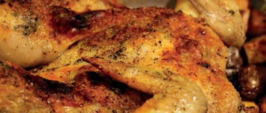 3. Roast chicken until thickest part of breast close to bone registers 66°C on a thermometer and joint between thighs and body registers at least 80°C, about 45 minutes, reducing heat to 230°C if chicken starts to darken too quickly.