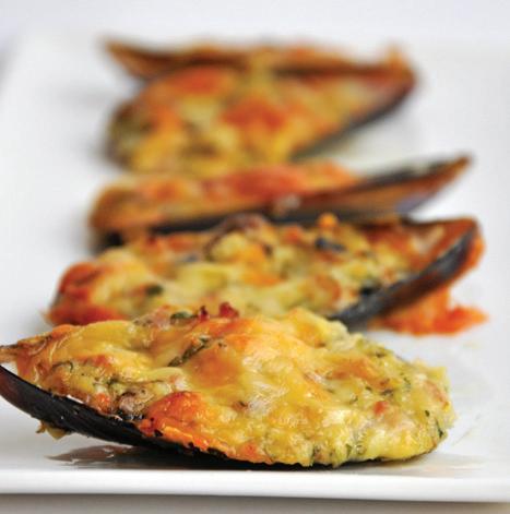 3. Pour chilli sauce over stuffed mussels and sprinkle with grated cheese or parmesan.