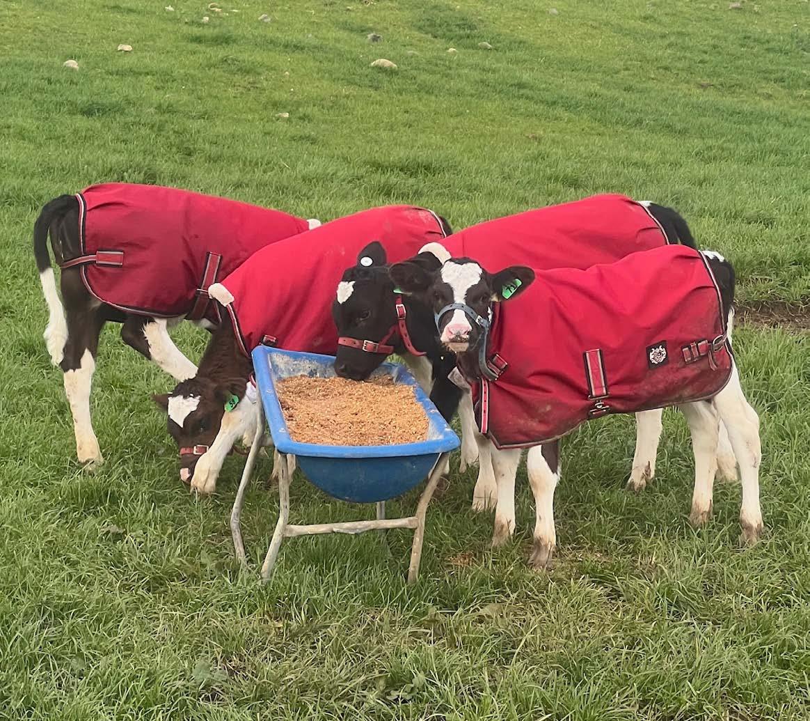Feeding a hard feed or 'meal' stimulates the little villi in the rumen to develop. This means that the calf or lamb is ready to be weaned off milk earlier than if they were on mum, because their stomachs are better developed and ready to absorb nutrients from food other than milk, such as grass and meal.