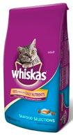 • A savoury combination of bite-size kibbles and crunchy meaty pockets, double basted with natural juices for extra flavour. Minerals in Whiskas such as calcium and magnesium are important for keeping teeth and bones strong and essential for growth and body function.