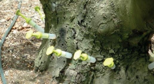 Tree-Doc is the product designed for injection. For young trees, Phosgard can be applied as a foliar spray.