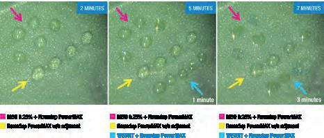 Roundup PowerMAX with WETCIT showed superior distribution through the plant and in a shorter amount of time. In fact, the combinations with oil showed no benefit than using the Roundup PowerMAX by itself!