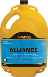 *Terms and Conditions apply. Special prices and offers applty for the month of December 2022 while stocks last. Product range varies by store. Shop in-store or online at shop.farmlands.co.nz/christmasbonus Alliance 5L $398.00 SAVE $25.95 • Controls internal parasites in sheep and cattle, including tapeworm in sheep. • Short-acting white/ML/ clear triple combination oral drench. • Triple combinations are best practice for drench resistance management, and as a quarantine drench.