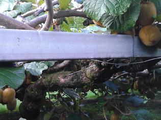 Many of the wood laminates used in the older structures have started to break down and an increasing number of growers are replacing them with Agbeam steel product. Agbeam is locally made using New Zealand steel. It is cost effective, robust and relatively easy to install. The product is demonstrating superior performance compared to some of the cheaper imported products entering the market. Crops supported by Agbeam structures also benefit from advantages in plant health. For example, unlike with wooden materials, the Agbeam steel material does not accommodate pests such as passion vine hopper eggs. It also deters fungal accumulation. Agbeam is galvanised square (64x38mm) hollow section steel beam that is available in lengths of 5, 6, 7, 8, 9 and 10 metres. These lengths can be bought separately, or in packet lots of 50, which is the most cost effective. Agbeam is available in two wall thicknesses — standard 1.15mm, or heavy 1.55mm. The heavy grade is used where heavier crop loadings are anticipated, for example with G3 Gold crops or with row spacing of 4.5 metres or greater. The sections of beam are joined using galvanised 400mm slip-on joiners that simply slide over the two butted ends. Two sizes of joiners are available to match the grade of beam — standard 1.85mm and light 1.55mm. As a guide, growers planning to use Agbeam will require approximately