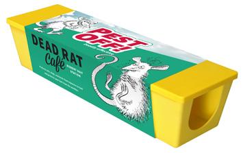For successful rodent control, best practice is to use the Dead Rat Café or Departure Lounge to secure the bait, as they will protect non-target species while keeping the bait dry and fresh. The Dead Rat Café can be used indoors or outdoors, it can be pegged/nailed or screwed down and the wire hoops will prevent rodents from stealing the bait.