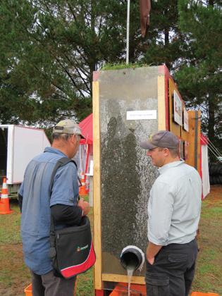 Blackley Construction, a large contracting company based in the Manawatu, had an excellent cross section working model of a drainage trench on their site at this year’s Central Districts Field Days. “We recommend AP5 to 15 (size range 5mm to 15mm) aggregate,” James Christensen, Rural Contract Manager for Blackley says. “It’s easy to work with, supports the pipe, compacts less, remains porous and