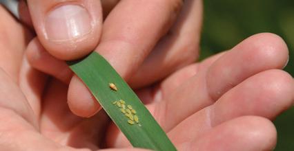 emergence, otherwise monitor crops from the start of tillering or 6 weeks after planting. If aphids are present, an approved foliar insecticide needs to be applied as soon as possible to prevent the spread of BYDV.