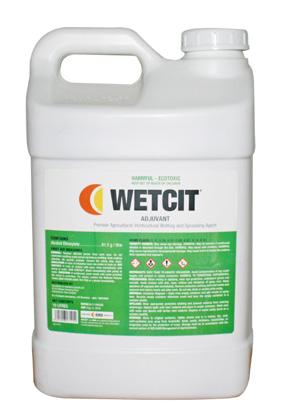 WETCIT is an advanced adjuvant available only through Farmlands and has been highly successful in improving the efficacy of a large range of pesticides. WETCIT is produced using renewable cold-pressed orange oil, rather than mineral oil bases of other adjuvants. It is soft on the crop and on beneficial non-target insects.