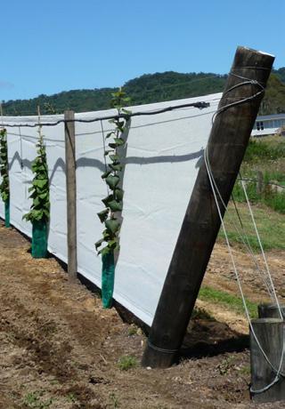 Typically white shelter cloth is the preferred option for use in kiwifruit blocks as the colour enhances light reflectivity reducing the effects of shading.