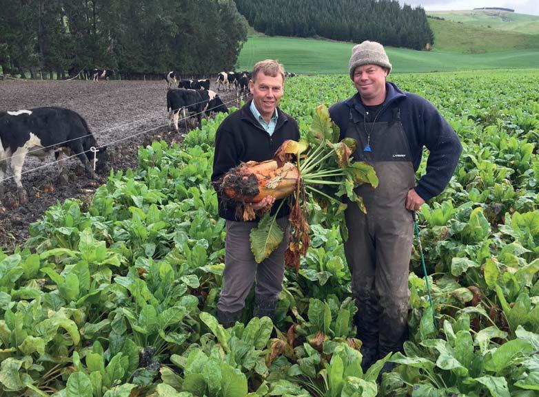 The Newtons graze 200kg bull calves on fodder beet from midApril to September, and sell them as store cattle at 310kg. “Fodder beet is better than other crops like kale because we need less area out of pasture and can carry these cattle through winter and sell when there is good demand,” Andrew says.