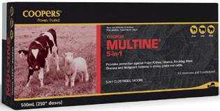 When you are buying MULTINE for the sheep flock, consider the beef cattle too. Ensure young beef stock clostridial vaccinations are completed. Blackleg and Sudden Death Syndrome are most often seen in young, fast-growing cattle. Both diseases progress rapidly, so that often the first sign is dead stock. An initial course of two vaccinations 4-6 weeks apart will provide protection – and MULTINE 5-in-1 covers the five common clostridial diseases.