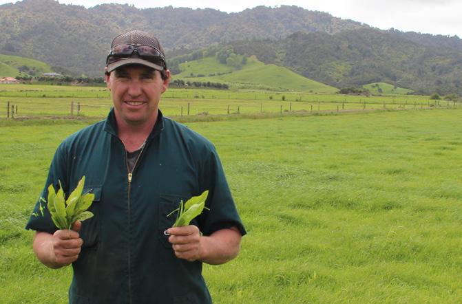 the paddock the cows go up,” Reon says, supporting recent DairyNZ work on Choice in the Waikato. DairyNZ trials near Hamilton found that the feed value of chicory is both high and consistent, with regular tests over 2 years finding a very narrow range of energy (12.5 to 13 MJ ME/kg DM) and protein results (20 to 25 percent dry matter). This feed value makes it the ideal supplement for ryegrass pastures, which often have inadequate quality in summer and autumn, to optimise milk production. In addition to the boost in cow performance, chicory grows more rapidly than ryegrass through this period, allowing relatively small areas to have a positive impact on total farm milk production.