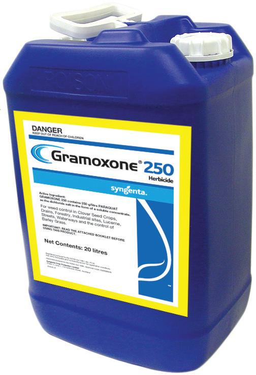 recover quickly. It is inactivated on contact with the soil. Gramoxone 250 contains a blue dye for identification and a stenching agent to reduce the risk of accidental ingestion. Best use advice for Gramoxone 250 in lucerne