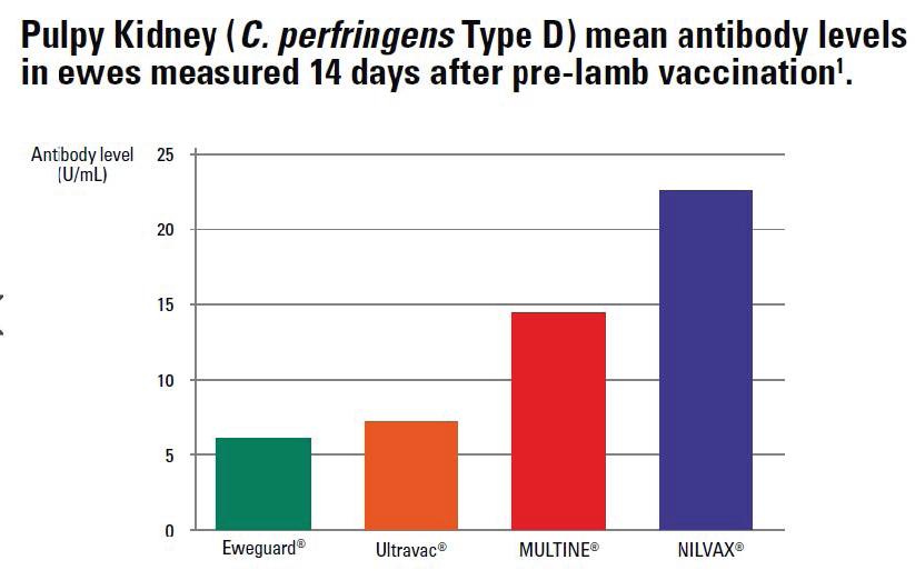 conditions seen this summer in some districts, ewes may be lighter than ideal and as a result, may be less likely to respond well to vaccination. When ewes are vaccinated pre-lamb with Nilvax, this results in more clostridial antibodies in their colostrum.