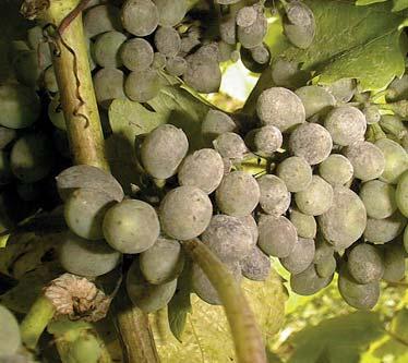 Under favourable conditions, botrytis develops in grape bunches causing rots that dramatically effect quality and yields. Apart from being unsightly, powdery mildew can cause significant economic losses. Bunch infections reduce yields through retarding berry growth, delaying maturity and causing splitting. Winemakers detest powdery mildew infected grapes, as they cause off-flavours in wine. Bunches with even minor infections (less than 5 percent) may be rejected or result in a severe financial penalty.
