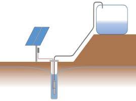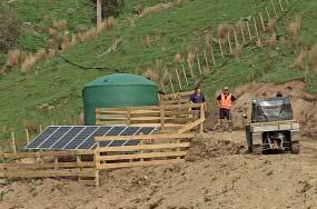 powered generators. All the pros and cons were considered, ranging from high pole charges, transformer and connection costs with grid power, to the required physical topography to site a water ram and the initial setup costs and running/maintenance requirements of a diesel generator in a remote location. A direct solar powered pump, with no battery storage, that can still operate in moderately overcast conditions won out on the day, providing the best return on investment.