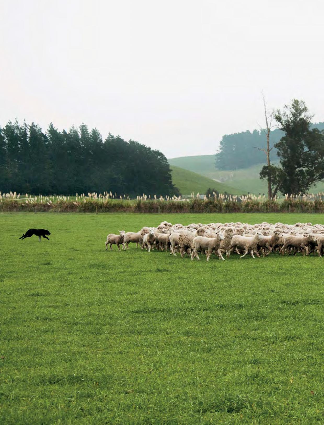 | Trev the dog rounds up a mob of sheep on Charles Douglas-Clifford’s North Canterbury farm.