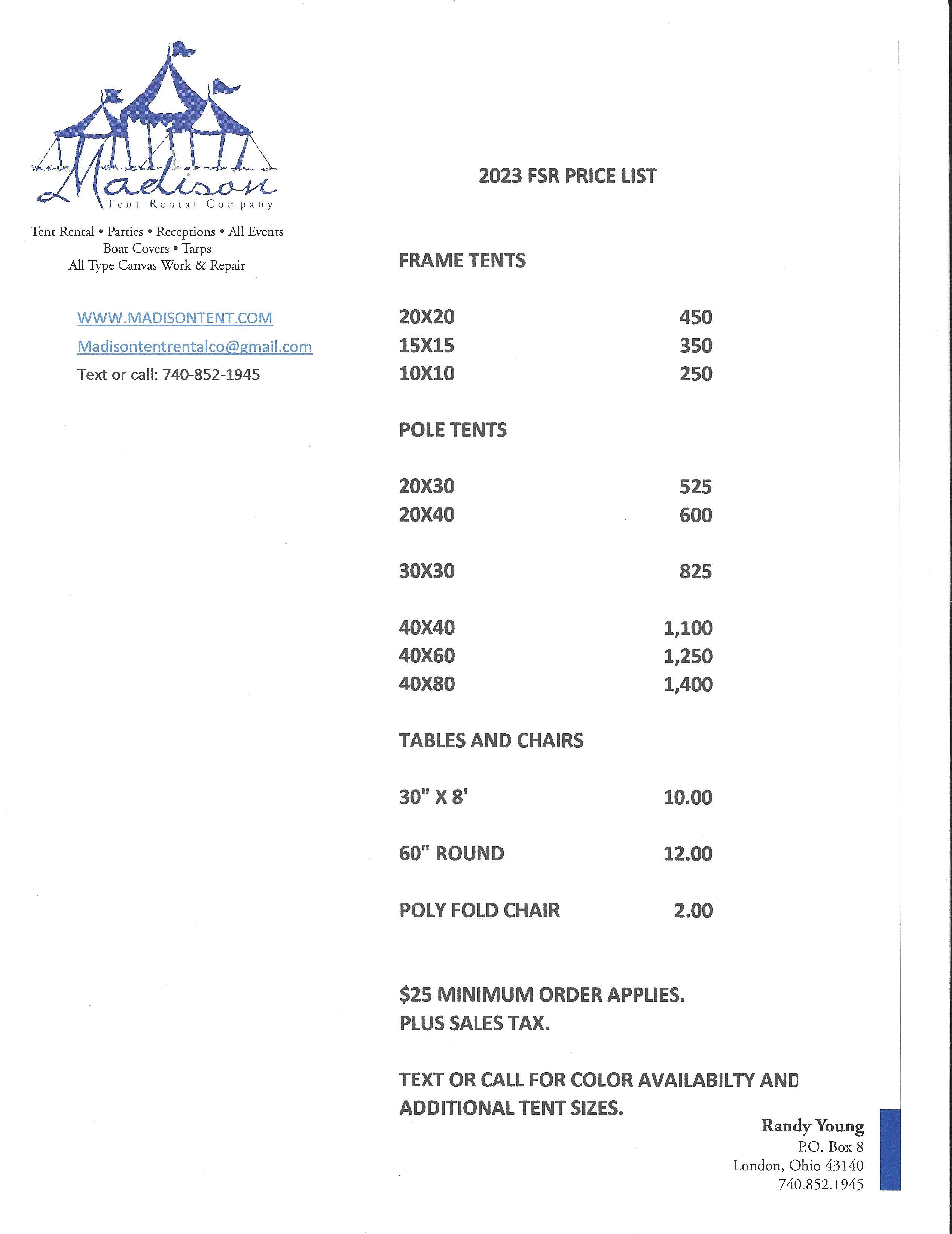 Advance sale tickets, Promotional Materials, and packet release form is available on our website at fsr.osu.edu under the Exhibitor tab.