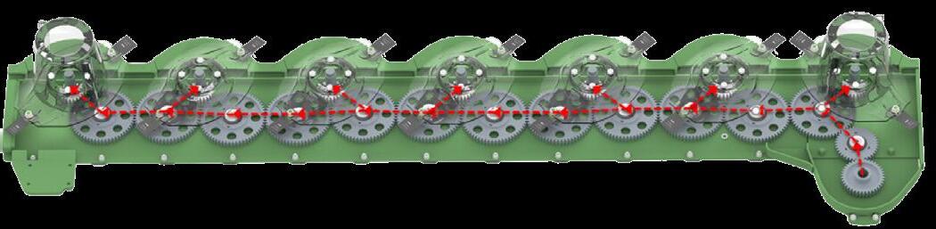 • Drive transmitted onto discs through large gear wheels only - less RPM, less wear, less fuel and much quieter