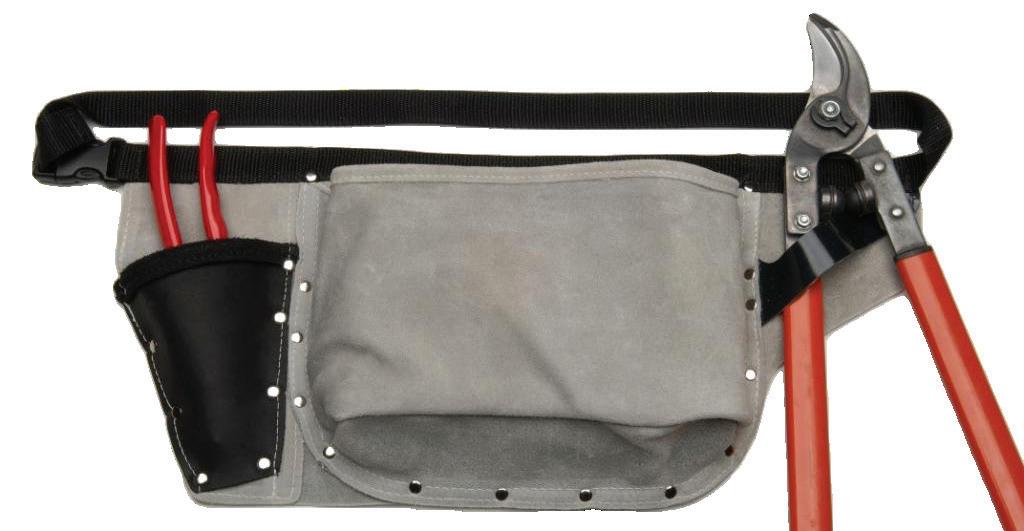versatile pouches have large capacity pockets for holding ties and other pruning equipment.