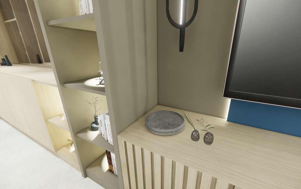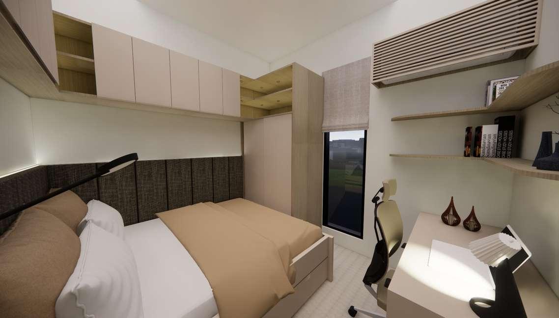 This project was made for a real client who wants to redesign their home. Home is a place in which a family took shelter from their everyday lives, and gather with family members to connect with each other. Therefore, the rooms should be made practical and uncluttered to avoid extra works for the household, especially in a house with limited spaces. Clear straight lines and warm coloured wood textures are the main focus in this concept which make the room look effortlessly tidy and uncluttered, giving the illusions of bigger space, with the help of warm solid colors that give off certain warm ambience to the room so that it balances out the whole colour palette and shapes