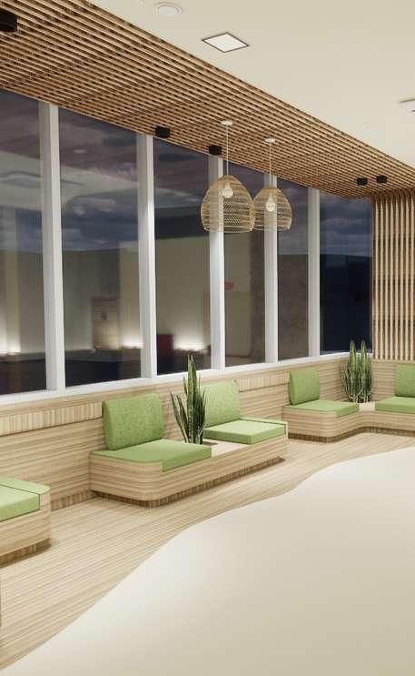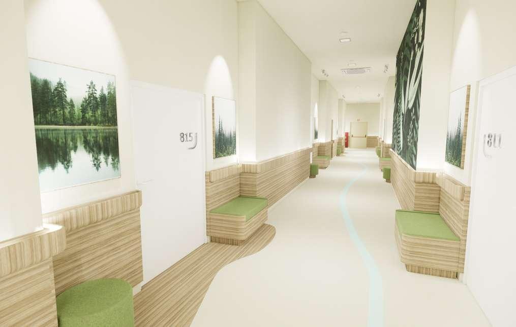 The main concept of this hospital refers to the approach used in the general design, which is healing environment. This approach includes using natural materials / natural looking materials, adapting objects found in nature to the design, so it helps the patients recover efficiently and reduces stress level for the patients and medical staffs.