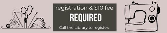 This is a 3-part class for those who want to learn to use a sewing machine. We will begin with the basics of sewing a seam and reading a pattern, and progress to making a drawstring backpack as part of the class. Materials and sewing machine provided. Registration & $10 fee required. This class is strictly limited to adults. Registration is required for this program to ensure we reserve enough sewing machines. Register by calling the Library at 252-753-3355.