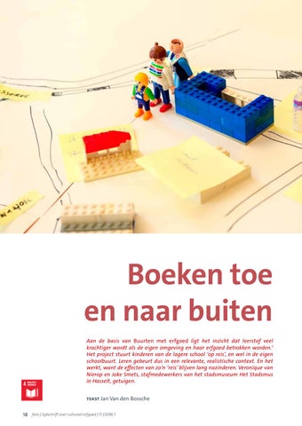 Boeken toe en naar buiten Aan de basis van Buurten met erfgoed ligt het inzicht dat leerstof veel krachtiger wordt als de eigen omgeving en haar erfgoed betrokken worden.1 Het project stuurt kinderen van de lagere school ‘op reis’, en wel in de eigen schoolbuurt. Leren gebeurt dus in een relevante, realistische context. En het werkt, want de effecten van zo’n ‘reis’ blijven lang nazinderen. Veronique van Nierop en Joke Smets, stafmedewerkers van het stadsmuseum Het Stadsmus in Hasselt, getuigen. tekst Jan Van den Bossche 18