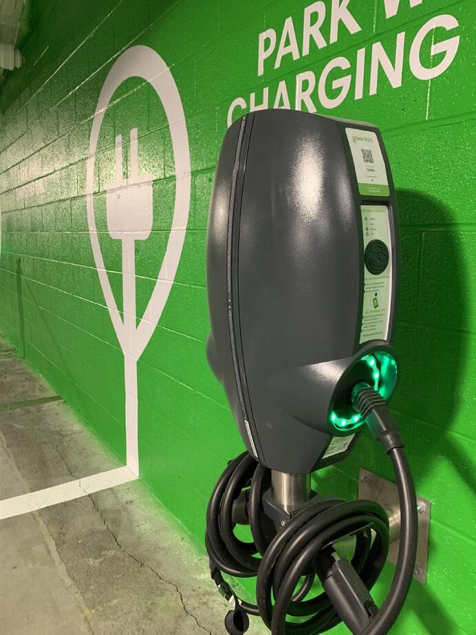 The charging stations are located on Level 2 of the Nova Place Parking Garage, adjacent to Gate 4.