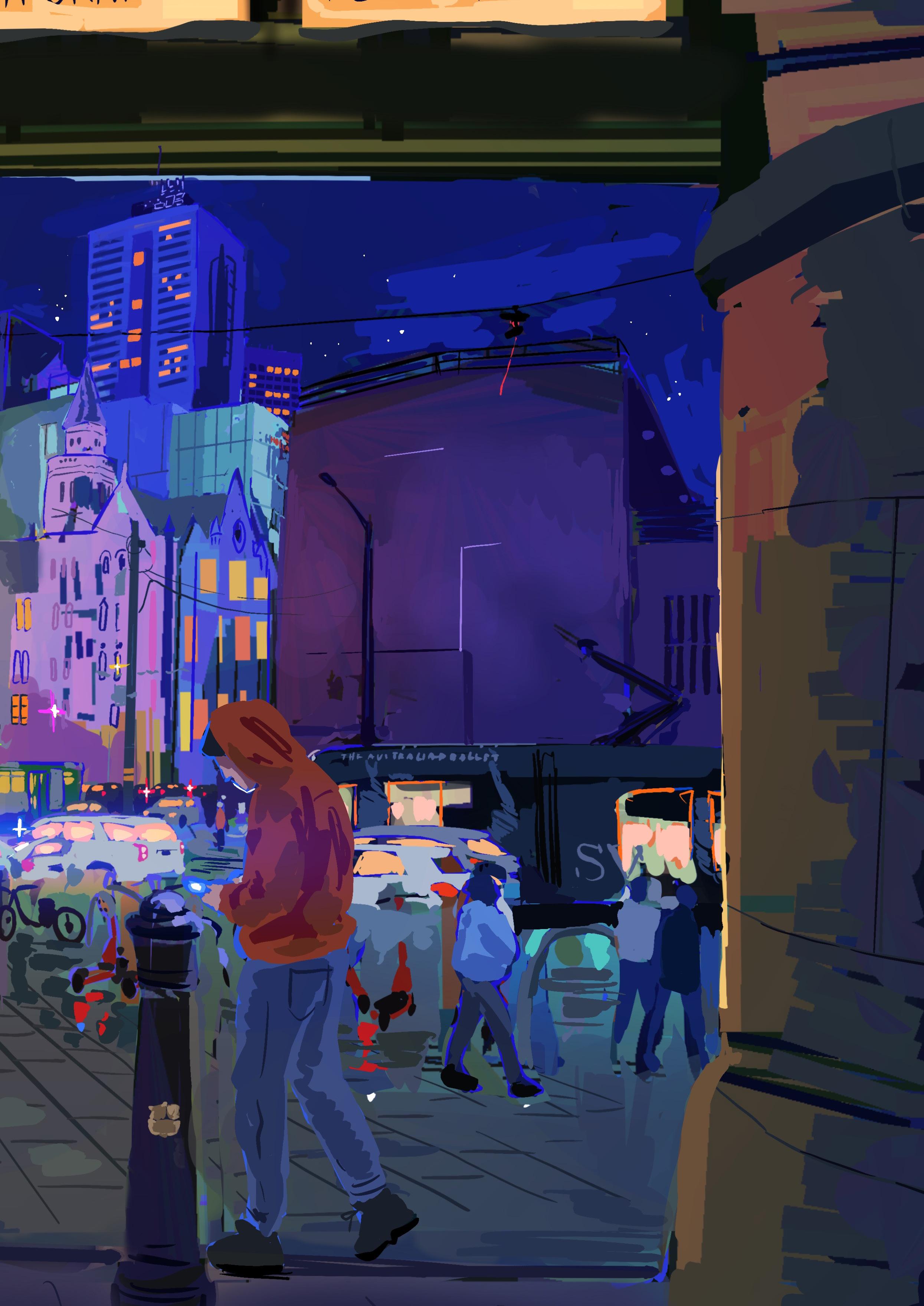 The electricity of it all hit at Little Malop Street; the shared, and arguably, somewhat gentrified lane – businesses with basketballs in the front windows marketing themselves on novelty and slightly trendier restaurants with neon lights, whose names aren’t worth the effort of remembering, as most of them would close within the year. The art-deco string lights above fluttered lightly in the breeze. The sounds of rustling fallen leaves and litter drowned out by a small congregation of young professionals going out for lunch, all desperate to impress each other with just how sanitised they could be. Our protagonists continued, past the industrial parking structure and the dancewear store that sold primarily children’s Disney costumes, to the crossing before the town hall, the last one hundred metres between them and their target.