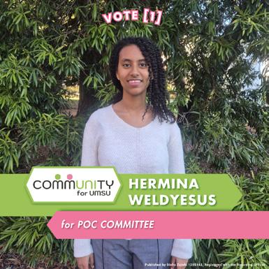 Hi everyone! I’m Lushy (she/her), a second-year Bachelor of Biomedicine student, and I’m so excited and privileged to be your Community for UMSU’s presidential candidate for 2026! I’m a proud Black woman, and current People of Colour Committee member, and I’ve seen first-hand just how much UMSU can do when we put students first.