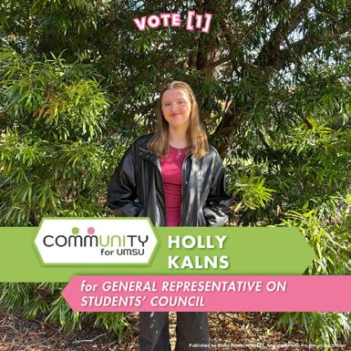 UMSU represents all of you, and I want to be your voice, fighting for your access to the basics of student life. You need access to nutritious food and groceries. You need access to free period products on campus. You need access to cheaper and free events that encourage genuine student connection and the platform and opportunities to make friends.