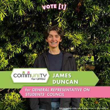 It’s time for change - for the union, and for you. Students deserve a UMSU that doesn’t just react, but represents and leads. As General Secretary, I’ll work to build a stronger, more democratic UMSU: one that actually consults with students, opens up decision-making processes, and empowers grassroots participation and action. Because good student life doesn’t just happen, it’s fought for.