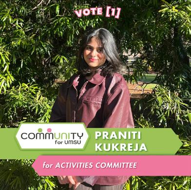 In the face of global conflict and uncertainty, UMSU can have a tangible impact on its 70,000 students by providing safe, inclusive, judgement-free spaces – giving a reason for students to come to Uni other than class. I hope you will Vote [1] Growth for UMSU, for a warmer, more connected campus!