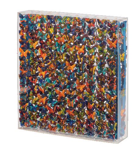 Farfalle di ceramica in teca di plexiglass, cm 103,5x97,5x20 (teca)
