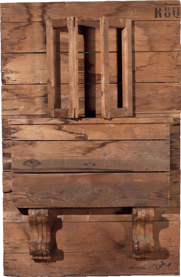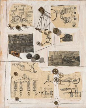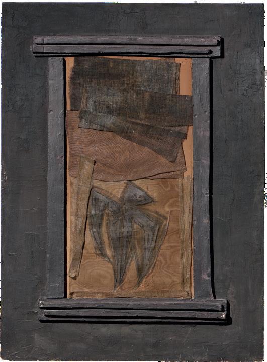 Assemblaggio e tecnica mista su tela e legno, cm 70x80,5