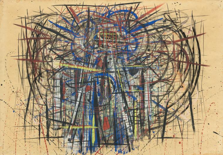 Tecnica mista su carta applicata su tavola, cm 50x69,5