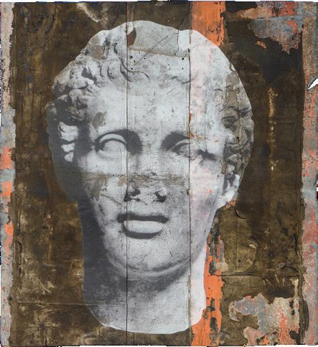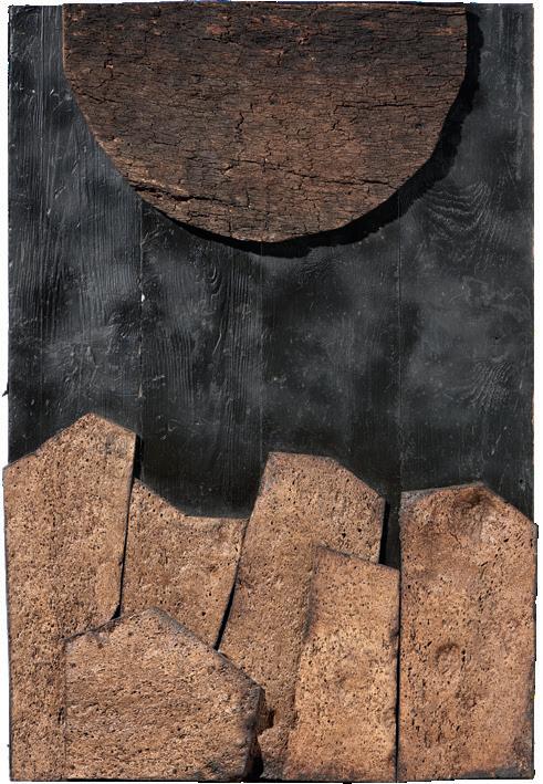 Assemblaggio e tecnica mista su tela e legno, cm 70x80,5