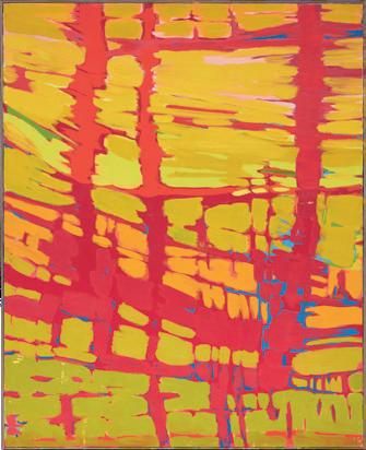 Firma e data al verso sulla tela: Pozzati 75; titolo e data sul telaio: “Una giacca gialla per Marcel” - 1975.