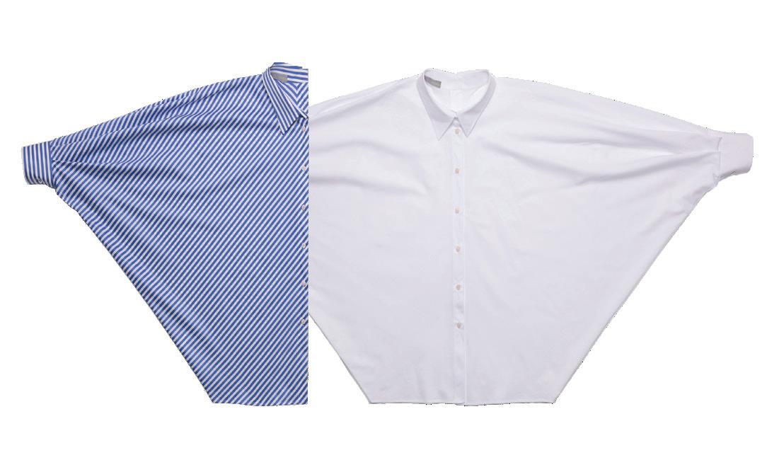 Il fascino discreto di una camicia bianca, che può essere staccata a metà e ricomposta con un pezzo di una altra camicia, per creare interpretazioni più audaci. Questa la filosofia della startup di Jessica De Cata.