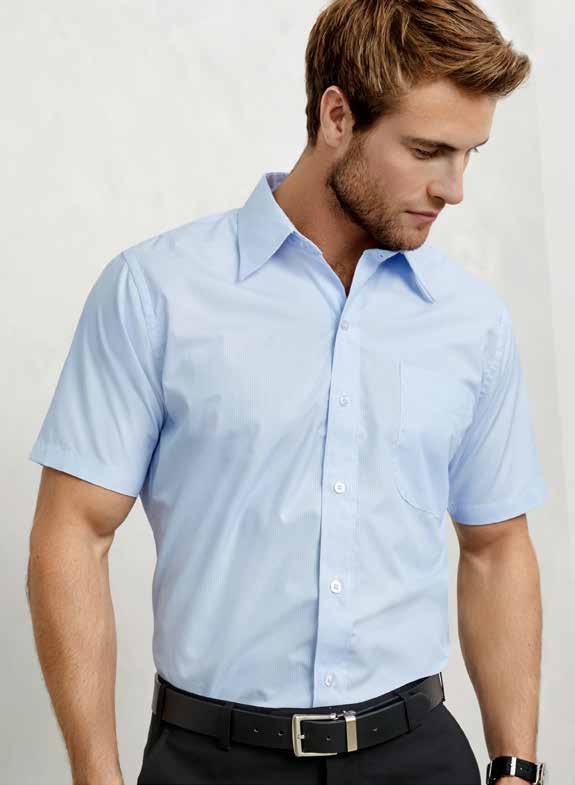 FEATURES • Two-piece self-fabric collar • Clean modern placket • Side splits at hem • Mens style includes loose pocket and concealed button down collar